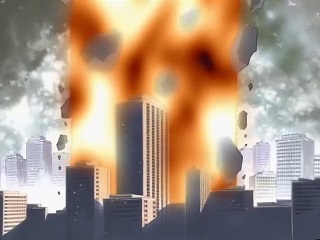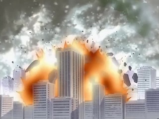 (3 sec) Birdramon, Angewomon, Angemon, and Andromon (lot of ‘An’-mon in there…) all attack Mugendramon together, causing a huge explosion, which is cut.